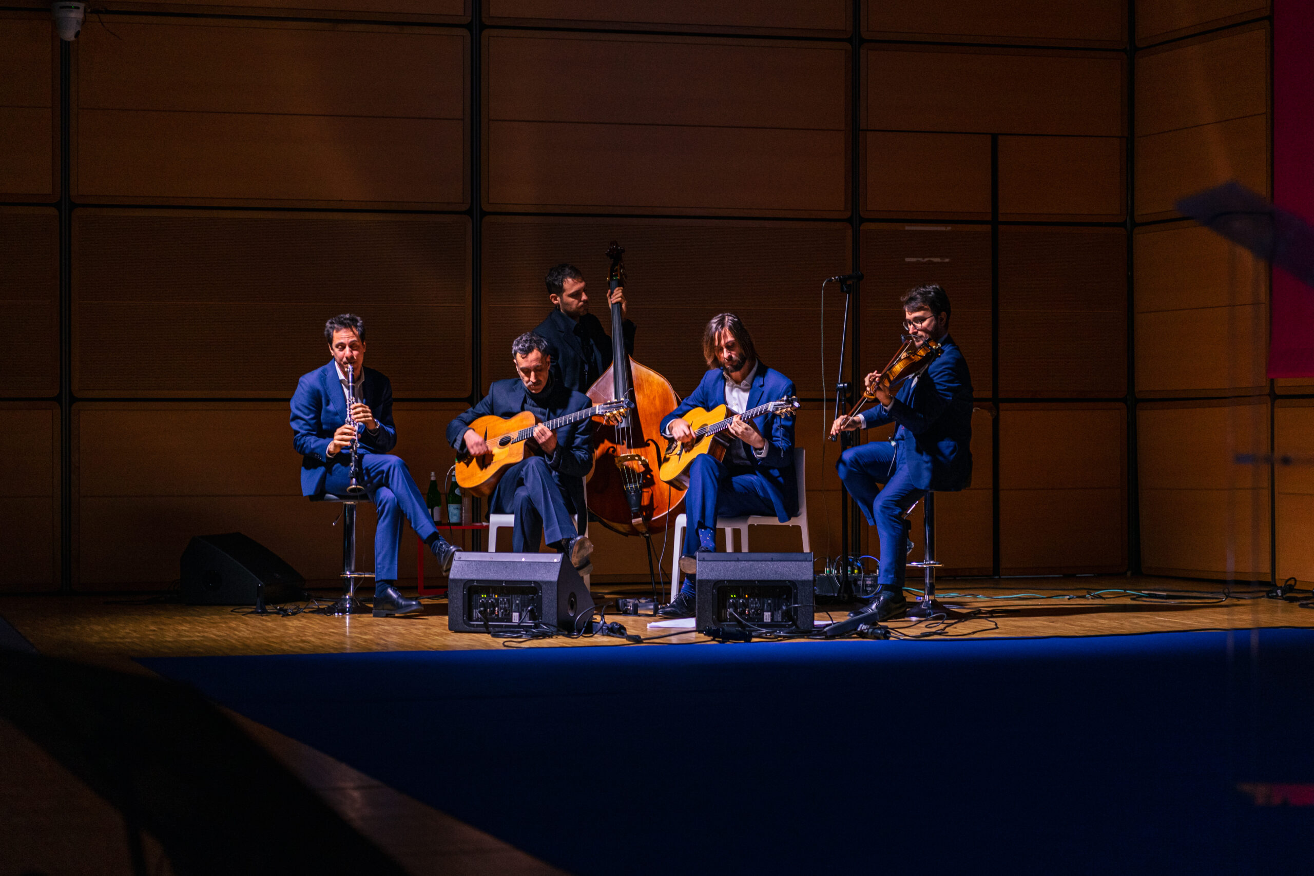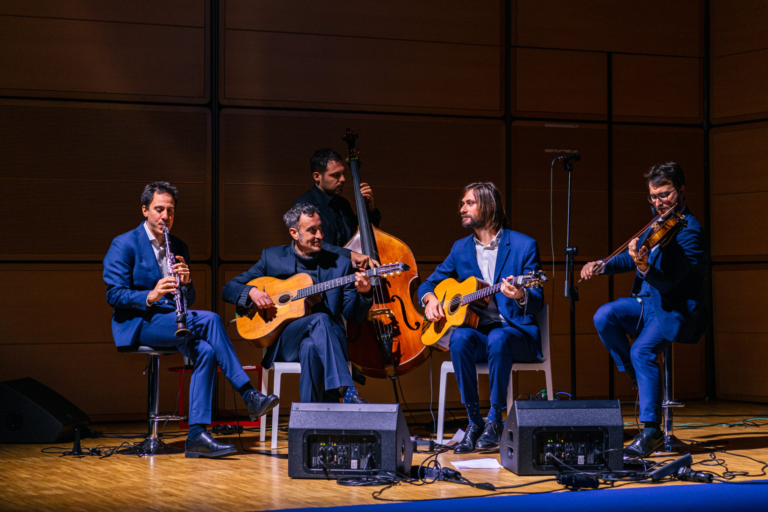 Sul palco, nessuna “ricetta del successo” preconfezionata da un guru, ma i Four On Six: un’orchestra jazz-manouche dove l’intesa quasi telepatica tra i musicisti diventa la metafora di una Compagnia che prende uno “standard” e lo rende inedito, Extra-ordinario. Un’armonia dove il successo del singolo coincide esattamente con quello del gruppo.